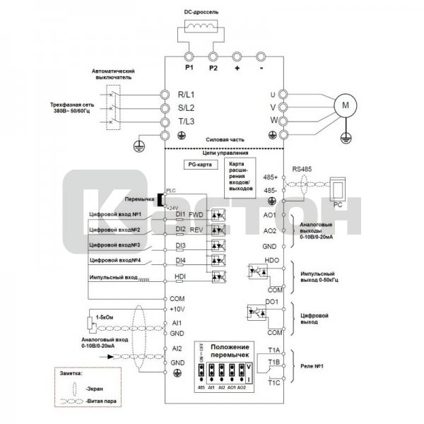 • Дроссель в звене постоянного тока встроен у моделей: от 220 кВт и выше;