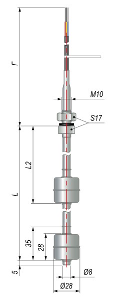 - Материал рабочей части датчика: Сталь 12Х18Н10Т (шток), и AISI 316L (поплавок);