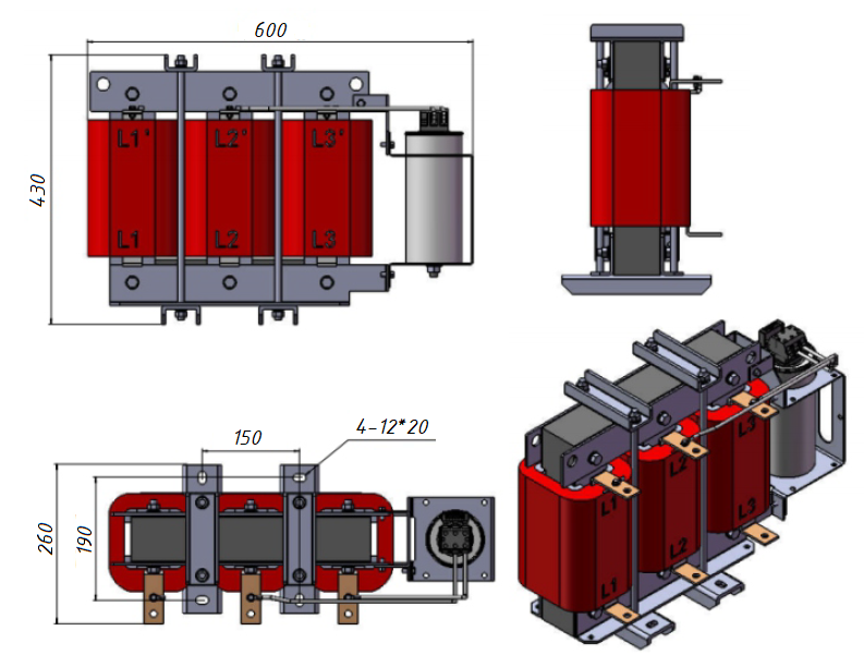 Синус-фильтр устанавливается на выходе частотного преобразователя (ПЧ) и предназначен для формирования практически синусоидального напряжения на клеммах электродвигателя.