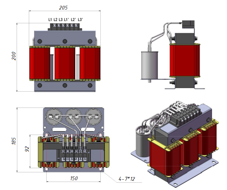Синус-фильтр устраняет высокочастотные составляющие и восстанавливает форму напряжения до близкой к синусоидальной, обеспечивая питание двигателя “чистой” синусоидой. Это снижает вибрации, акустический шум, уменьшает потери и повышает срок службы электродвигателя.