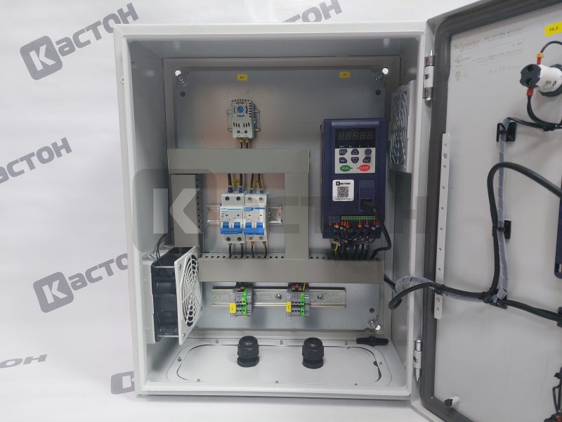 - Принудительная вентиляция шкафа: автоматический выключатель двухполюсный С2А, термостат НО-контакт, решетка с фильтром и вентилятором, решетка с фильтром;