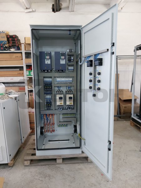 - Пуск напрямую от сети 4-х вентиляторов, мощностью 1,63кВт каждый и 1-го насоса 7.5кВт в ручном режиме;