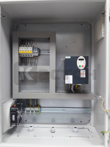 - Принудительная вентиляция шкафа: автоматический выключатель двухполюсный С2А (1шт), термостат НО-контакт (1шт), решетка с фильтром и вентилятором (1шт), решетка с фильтром (1шт);