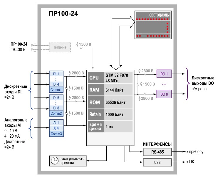 - Дискретные входы: 4 (=24В);