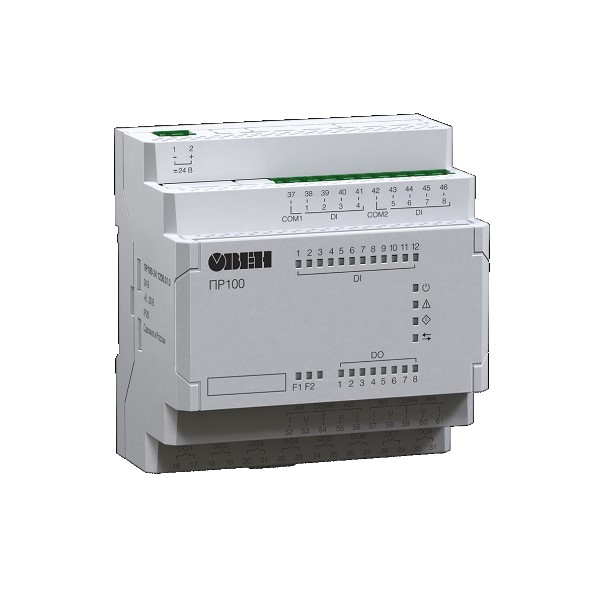 Прибор изготавливается в автоматном корпусе 5 DIN. Имеет на борту аналоговые и дискретные входы, а также дискретные выходы. Для управления устройствами по сети или передачи данных на верхний уровень в приборе предусмотрен интерфейс RS-485.
