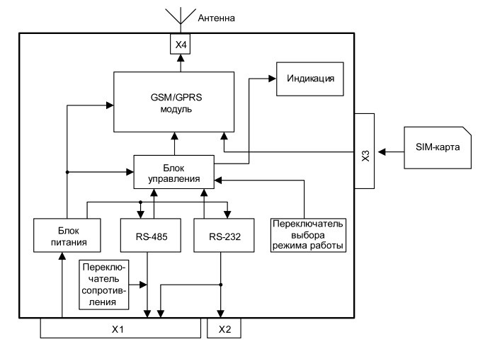 Позволяет производить управление приемом и передачей данных по последовательным интерфейсам RS-232 или RS-485 с помощью АТ-команд в соответствии со стандартами GSM 07.05 и GSM 07.07