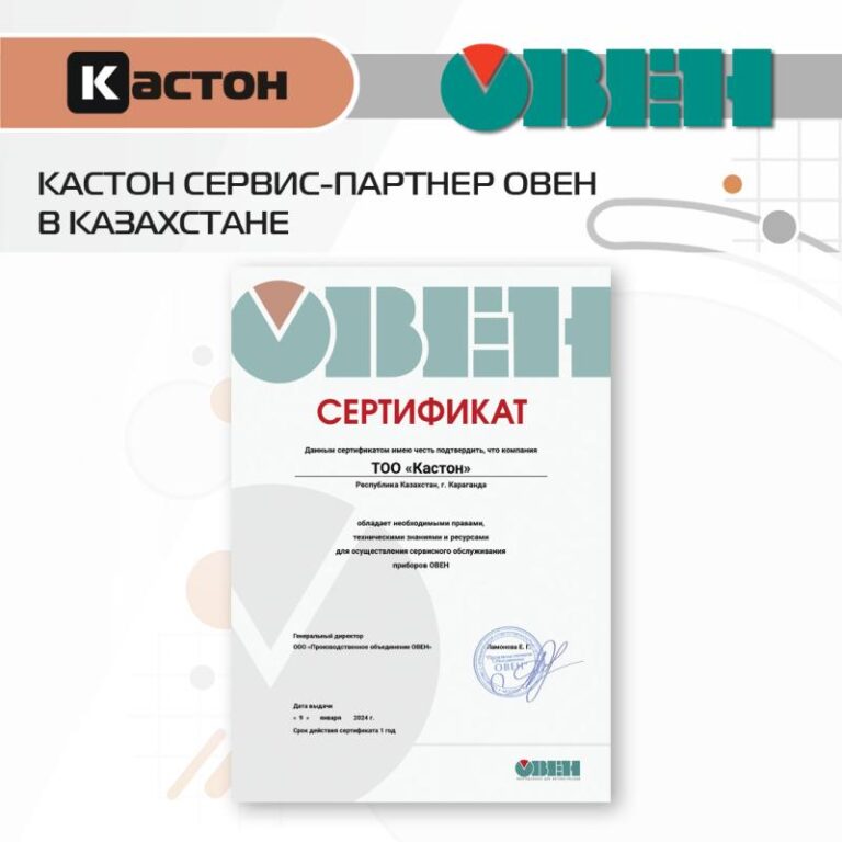 Наша компания является сертифицированным сервис-партнером ОВЕН в Казахстане. Это означает, что наши специалисты обладают необходимыми правами, техническими знаниями и ресурсами для осуществления сервисного обслуживания оборудования ОВЕН.